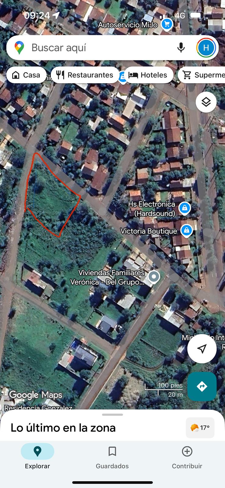 🔹 Terreno 2: Frente 17 m – Lado 42 m – Fondo 9 m – Otro lado 35 m.